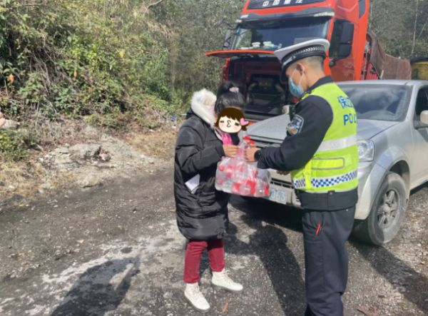 1月21日上午,保龙高速公路交巡警二大队民警巡逻至杭瑞高速2811公里处临时停车带时,一中年女子上前向民警求助,称自己已两天未进食,请警察给予帮助。