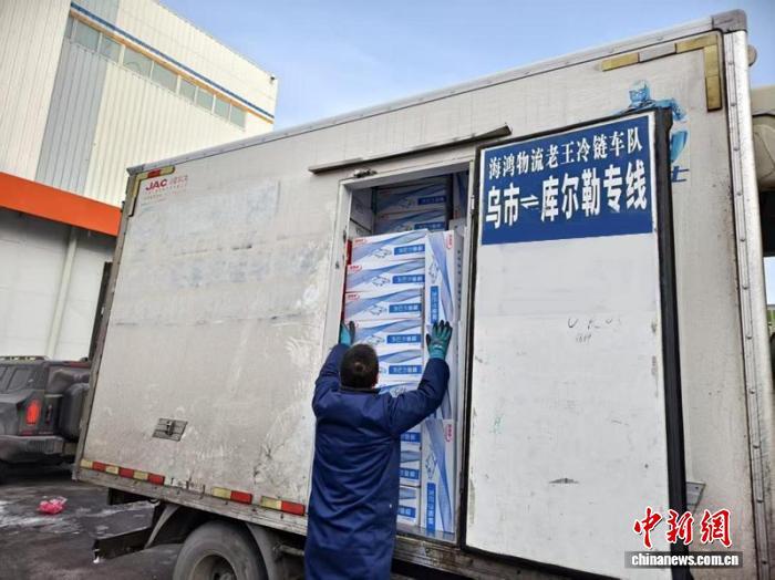 中新网乌鲁木齐2月10日电 (苟继鹏 李丽)“您放心,就算是一件货,我们也保证送到店里。”2月9日,位于乌鲁木齐经济技术开发区(头屯河区)的海鸿冷链园区内车水马龙,冷链货运司机王志一边将一箱箱冻货装车,一边回应客户的嘱托。随着春节临近,冻货与海鲜市场需求量增加,王志的货运单子也多了起来。