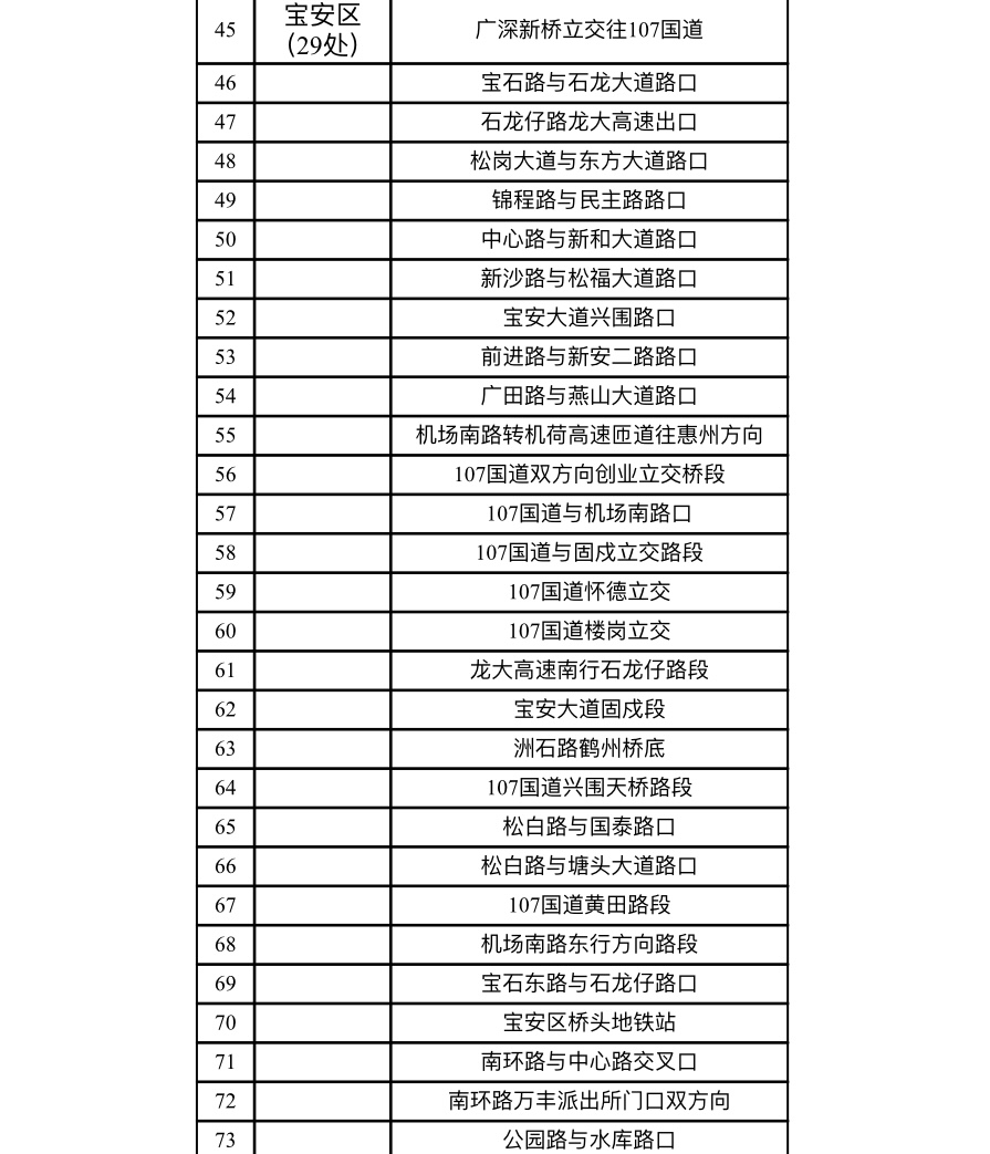 10月13日道路交通实时拥堵预警图根据气象、交通等权威部门发布的易积水路段汇总信息,全市范围雨水天气易积水路段共129处,其中,宝安、龙华、光明、龙岗等行政区积水路段较密集,请市民朋友注意出行安全。