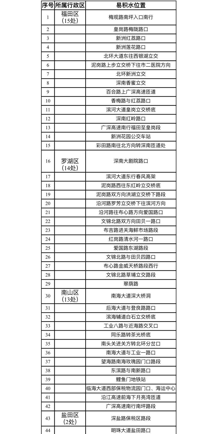 2021年雨水天气我市易积水点分布2021年雨水天气我市易积水点分布表(共129处)
