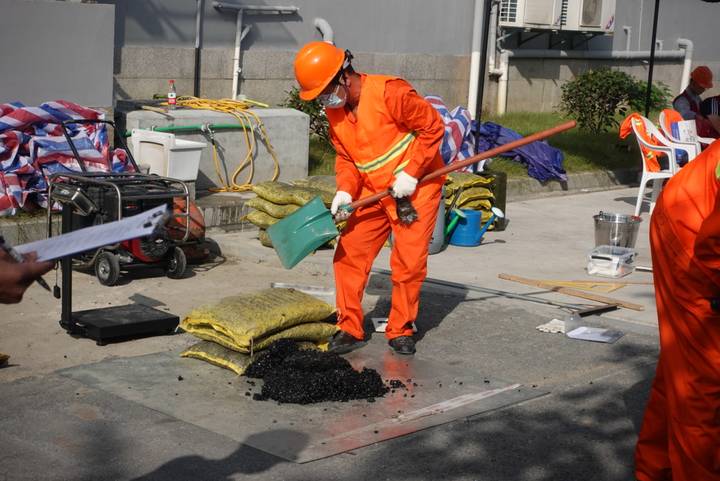 另一个项目是养护工竞赛,这部分的比赛内容是考验参赛选手对公路养护的了解和实操。每支参赛队伍有两人,一位是养护工,一位是技术员。技术员负责的是测绘之类较“文”的内容,而养护工负责道路实操等“武”的内容。